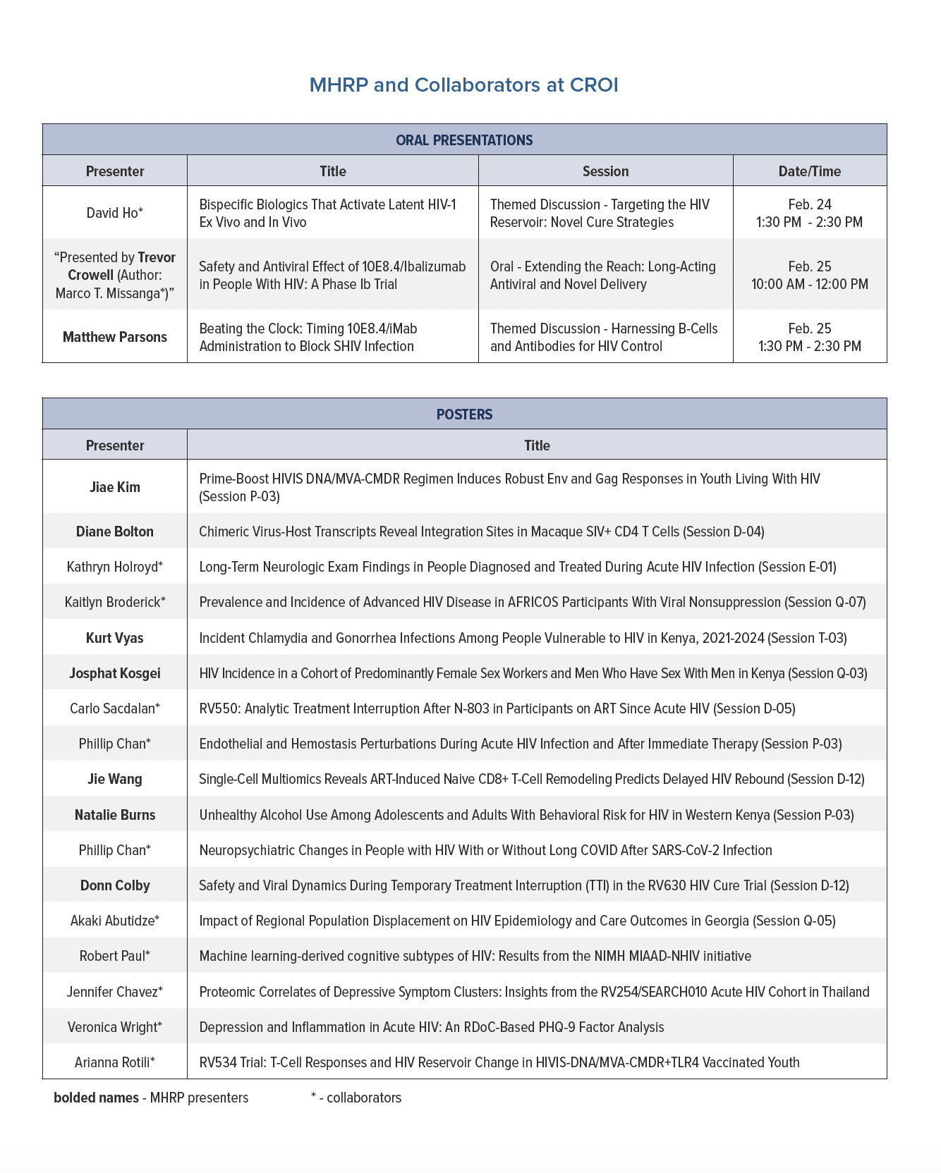 MHRP and Collaborators at CROI 2026